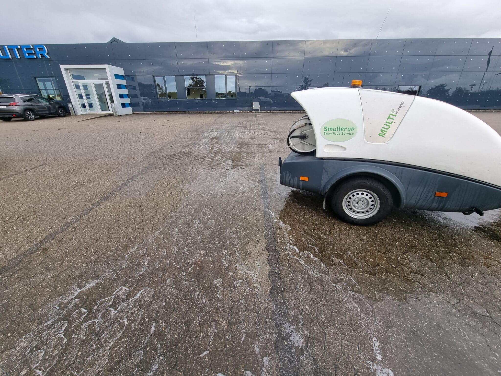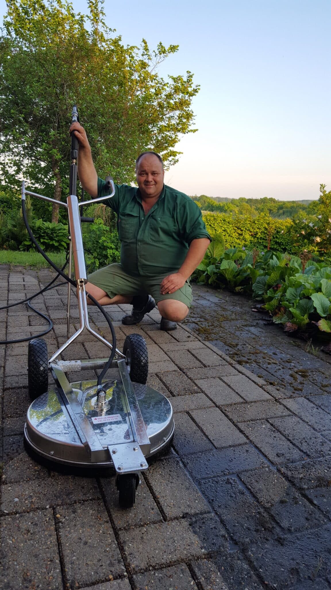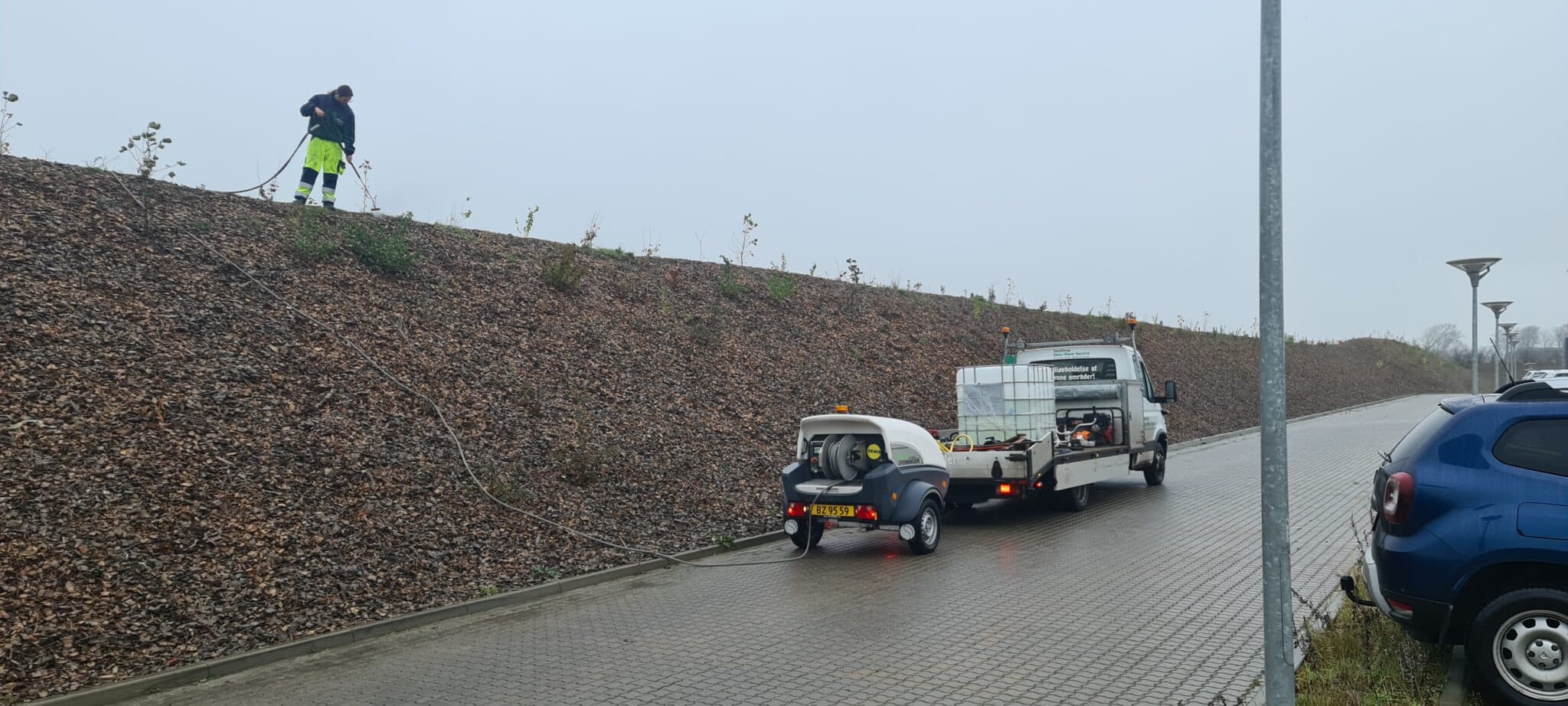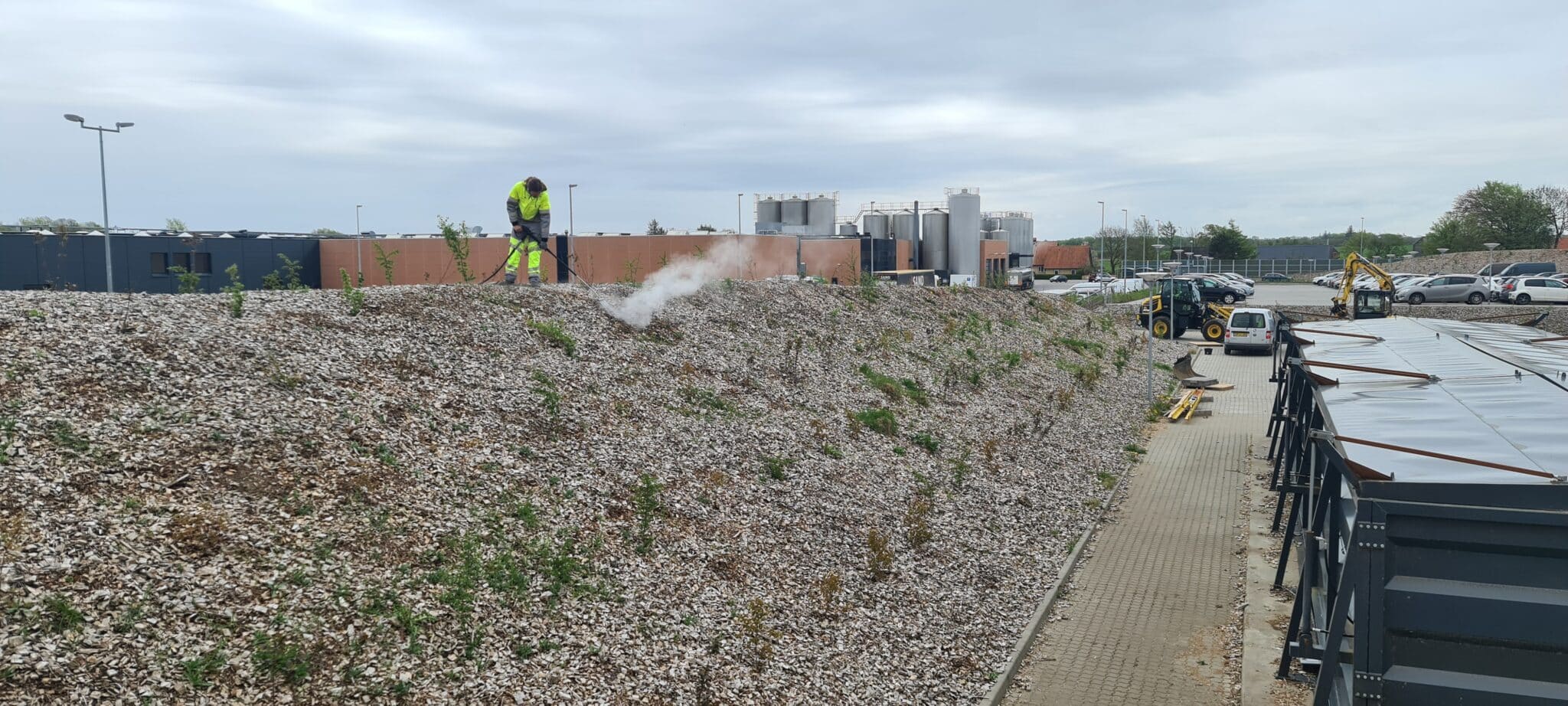 Vi bekæmper ukrudtet med varmt vand 99°C, helt uden brug af tilsætningsstoffer. Sammenlinet med gas afbrænding, virker varmt vand op til 15 gange så effektivt, (ukrudtet skal have gentagne behandlinger ca. 3-4 gange pr. sæson), og bladene skal visne helt væk efter hver behandling.